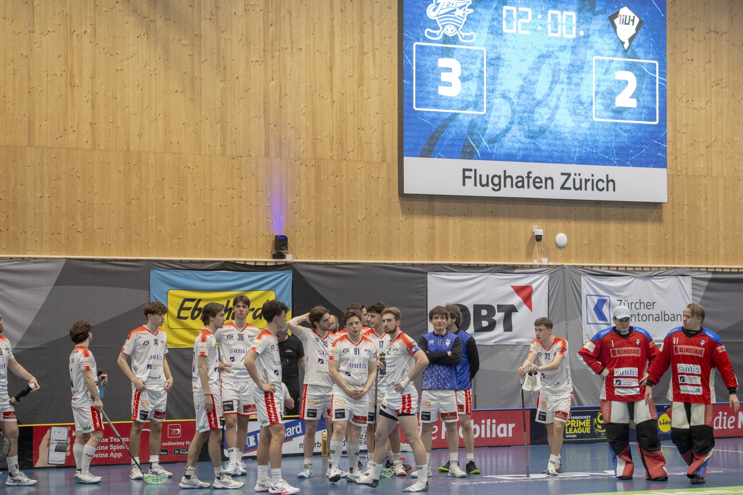 Sabato, alla Stiftung Sporthalle Stighag di Kloten, il TIUH ha faticato a entrare in partita nel primo tempo, lasciando l’iniziativa ai padroni di casa. I Jets hanno imposto fin da subito un ritmo elevato, sia in fase offensiva sia in fase difensiva, riuscendo a creare diverse occasioni e a concretizzarne due nel giro di pochi minuti, portandosi sul 2-0.